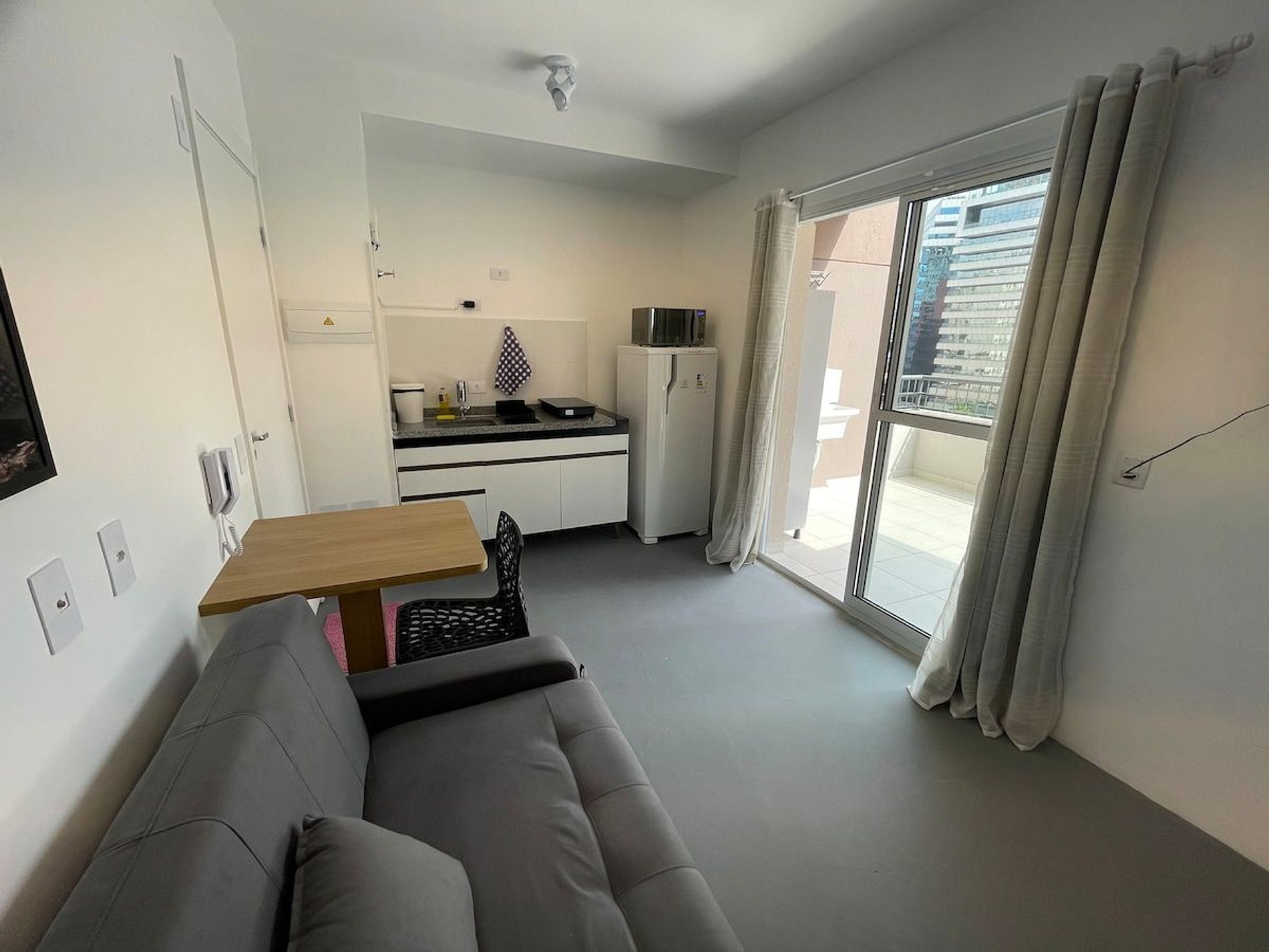 Se você busca localização, limpeza e preço justo, este é o lugar! Nosso estúdio fica no coração da Vila Olímpia, um dos bairros mais vibrantes e bem localizados de São Paulo. O espaço é básico: os móveis e utensílios são os essenciais, o piso é pintado, mas tudo é funcional e limpo. Contamos com uma cama de casal confortável, um sofá-cama, cozinha compacta e o grande destaque: uma varanda enorme com uma vista incrível para a região.