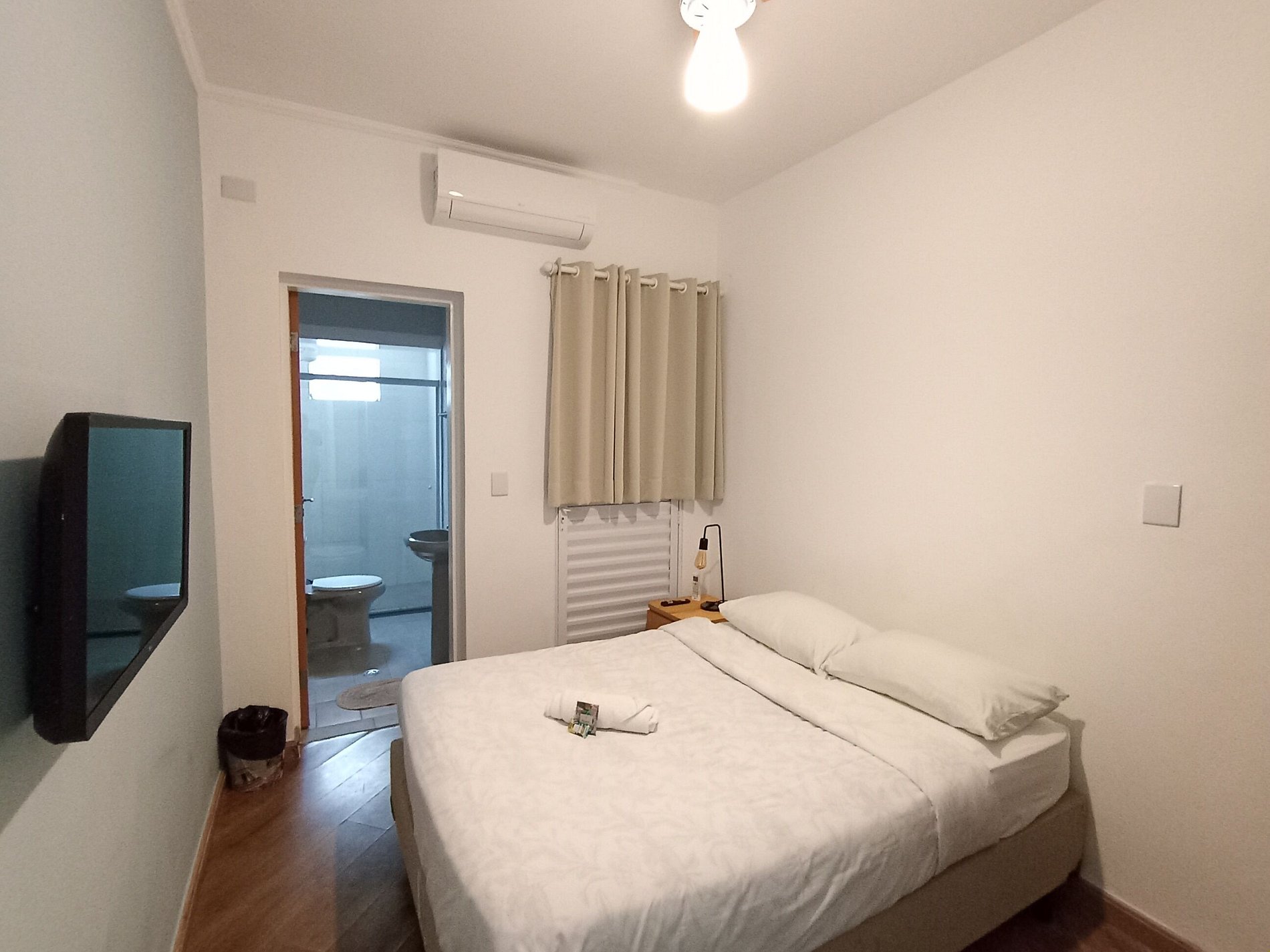 Este quarto possui 1 cama de casal, armário, SmartTV e um banheiro privativo. Moramos próximos ao local, e cuidamos de tudo para que você fique em um local seguro, limpo e confortável, na melhor região de São Paulo! NOTA IMPORTANTE: Limpeza é nossa prioridade e todas as áreas comuns estão equipadas com avisos de higienização e álcool em gel sempre fácil para usar, para a sua e a nossa segurança.